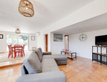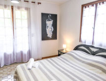 5-værelse-villa 280 m2 på 2 etager. Emner egnet for 6 voksne + 2 børn. Komfortabelt og pæn indrettet: indgang. Salon med åben kamin og TV (fladskærms TV). Udgang til terrasse. 1 værelse med 1 dobbeltseng (160 cm, længde 200 cm), 1 klapseng og brus/WC. Udgang til terrasse. 1 værelse med 1 fransk seng (160 cm, længde 200 cm), brus. Udgang til altan. 1 værelse med 1 fransk seng (160 cm, længde 200 cm). Udgang til altan, retning syd. Bad, særskilt toilet. Klimaanlæg. Nederste etage: stue/spisestue med TV (fladskærms TV). Udgang til pool. 1 værelse med 1 fransk seng (140 cm, længde 200 cm), brus. Køkken (4 kogeplader, ovn, opvaskemaskine, Brødrister, kedel, mikroovn, fryser, elektrisk kaffemaskine, Kapsler til kaffemasin (Senseo)) med bar. Udgang til have. Særskilt toilet. Klimaanlæg. Terrasse 30 m2. Havemøbler, grill, liggestole (8). Til benyttelse: vaskemaskine, barneseng. Internet (trådløs LAN [WLAN], gratis). Bemærk venligst: ikke-ryger lejlighed. Brandalarm. Ejendommen er helt indhegnet. En balkon er tilgængelig. En terrasse er tilgængelig. Det har en veranda. En ildsted er tilgængelig. Det har en privat pool. Det har en opvarmet pool. Du er mere selvstændig med den specielle vaskemaskine.- Karakteristika for boligen