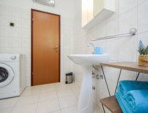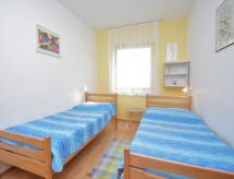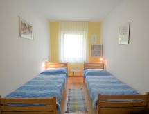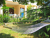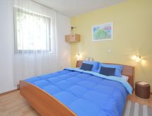 3-værelse-lejlighed 50 m2, i stueetagen. Hensigtsmæssig og hyggeligt indrettet: stue/spisestue med sat-TV og klimaanlæg. Udgang til terrasse. 1 værelse med 1 dobbeltseng (2 x 90 cm, længde 200 cm). 1 værelse med 2 senge (90 cm, længde 190 cm). Åbent køkken (2 kogeplader). Brus/WC. Klimaanlæg (ekstra). Terrasse 20 m2, overdækket. Havemøbler. Udsigt over have og skoven. Til benyttelse: internet (trådløs LAN [WLAN], gratis). 1 lille husdyr/hund tilladt. Legepladsen, som er egnet til børn, er tilgængelig. Velegnet til grillning.- Faciliteter