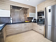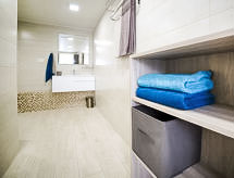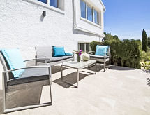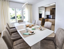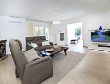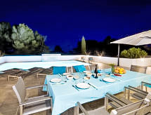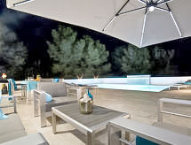 "Nelli", 6-værelse-hus 190 m2. Lys, smagfuld og hyggeligt indrettet: stue/spisestue med sat-TV og digital TV. 1 dobbeltværelse med brus. 1 værelse med 1 fransk seng og brus/WC. Åbent køkken (ovn, opvaskemaskine, 4 Induktionskomfur, mikroovn, elektrisk kaffemaskine, fonduesæt (ost )). Særskilt toilet. Klimaanlæg, varmluftsopvarming. Nederste etage: 1 værelse med 1 fransk seng. Udgang til have. 1 værelse med 2 senge. Brus, særskilt toilet. Klimaanlæg, varmluftsopvarming. Havemøbler, grill, liggestole. Udsigt over havet. Til benyttelse: vaskemaskine, tørretumbler, pengeskab, højstol, barneseng til 2 år. Internet (trådløs LAN [WLAN]). Parkeringsplads (indhegnet, 4 Biler). AT-465741-A Velegnet til grillning. Det har en privat pool. Huset er også udstyret med en ovn.- Faciliteter
