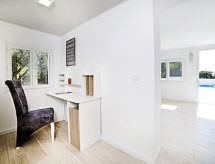 La Fustera 6 km fra Calpe: Smuk enfamiliehus "Nelli", på 2 etager, renoveret i 2018, omgivet af træer. 5.4 km fra centrum af Calpe, rolig beliggenhed, 1.4 km fra havet, 1.4 km fra stranden. Til alene benyttelse: grund 2'200 m2 (indhegnet), frugthave, pool (4 x 9 m, Sæsonbestemt tilgængelighed: 01.Jan. - 31.Dec.) med indetrappe og salt-elektrolys. Udendørs brus, terrasse, havemøbler, grill. I huset: trådløs LAN [WLAN], aircondition, vaskemaskine, tørretumbler. Parkeringsplads (for 4 biler). Supermarked 1 km, restaurant 1.5 km, bar 1 km, sandstrand 1.5 km. Lystbådhavn 1.5 km, marina 1.5 km, golfbane (8 hul) 6.3 km, surfskole 1.5 km, sejladsskole 1.5 km, tennis 4.8 km, ridehal 9.8 km, vandrestier fra huset, cykelvej 100 m. Nærliggende attraktioner: Aqualandia, Mundomar, Terra Mítica, Terra Natura, Benidorm Palace en Benidorm. Vandrestier Peñón de Ifach 6 km. Her er en førende mulighed for surfing. Surfing er en lidenskab, der har dræbt millioner af mennesker over hele verden. Hvis du er på udkig efter denne jords lykke på bagsiden af hestene, er du på det rigtige sted her. Kør på de mange idylliske ridestier i lokale gårde.Interior