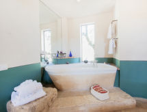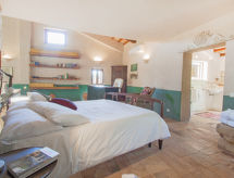 2-værelse-hus 100 m2. Renoveret, meget pæn og stilfuld indrettet: stue/spisestue med åben kamin, spisebord og klimaanlæg. Udgang til have. 1 åbent dobbeltværelse med med hjørnebadekar. Udgang til loggia. Kogeniche (ovn, mikroovn, fryser, elektrisk kaffemaskine). Brus/bidet/WC, dobbelt håndvask. Gas-opvarming, klimaanlæg (ekstra). Opvarme kun tilgængelig fra 01.11. til 15.04. Overetage: skrå, åben galleri, loftshøjde 80 - 180 cm med 1 dobbeltseng og sat-TV (fladskærms TV). Trægulve. Havesiddeplads, have, lysthus. Havemøbler, grill, liggestole, siddeplads. Flotte udsigt over landskabet. Til benyttelse: vaskemaskine, pengeskab, hårtørrer. Internet (trådløs LAN [WLAN], gratis). 1 husdyr/hund tilladt. Katte er ikke tilladt i huset. Bemærk venligst at sengen på det øverste niveau er en futon seng. Tilbudet kommer på forespørgsel med kok. Læn dig tilbage, ferien følelsen begynder i den tilhørende have. Selvom det bliver så varmt om natten, er det dejligt, du kan tænde klimaanlægget og sove i et behageligt tempereret indeklima. Der er balkon. En veranda er tilgængelig. Det har en privat pool. Ved rengøring. Hvad ville et moderne køkken være uden en mikrobølgeovn? Den der selvfølgelig er tilgængelig.- Faciliteter