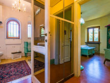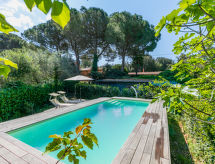 Enfamiliehus "Ninfea", på 2 etager, ensidig tilbygget, omgivet af træer. I lille byen Antignano, 5 km fra centrum af Livorno, 18 km fra bymidten af Castiglioncello, udmærket område: midt i centrum men stadig stille, 3 km fra havet. Til alene benyttelse: grund 1'000 m2 (indhegnet) med græsplane og træer, pool (oppsted svømmebassin) (7 x 3 m, Sæsonbestemt tilgængelighed: 01.Apr. - 31.Okt.) med salt-elektrolys. Udendørs brus, boblebad, bordtennis, Underholdning af poolen af ejeren/gartneren. I huset: vaskemaskine (til medbenyttelse). Morgenmad muligt (ekstra). 100 m lang, besværlige tilkørsel (natursti). Parkeringsplads (for 2 biler). Indkøbsforretning 1.5 km, supermarked 3 km, indkøbscenter 8 km, restaurant 1.5 km, togstation "Antignano" 1.5 km, kiselstenstrand "Antignano" 3 km. Nærliggende attraktioner: Pisa 30 km, Lucca 50 km, Firenze 100 km. Ejeren accepterer ikke nogen ungdomsgrupper. Bemærk venligst: Ejeren bor i et separat parcelhus. Ejeren har en hund. Sejlads anbefales. Lær mere om de bedste sejlruter på stedet. Bare surf igen på en positiv bølge? Stedet inviterer til bølge tur.Interior