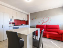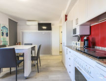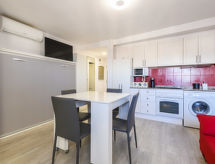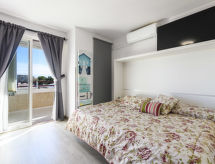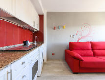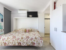 "Niza", 1-værelse-et-værelses lejlighed 35 m2 i 8. etage. Lys, enkelt og hensigtsmæssig indrettet: stue/spisestue med 1 skabsseng (135 cm, længde 190 cm), digital TV, fladskærms TV, klimaanlæg og varmluft opvarming. Udgang til terrasse. Køkken (ovn, 4 keramiske kogeplader, Brødrister, mikroovn, fryser, elektrisk kaffemaskine). Bad/bidet/WC. Opvarmning er ikke tilgængelig i alle værelser. Terrasse, øst vendt. Havemøbler. Udsigt over havet og byen. Til benyttelse: vaskemaskine, strygejern hårtørrer. Internet (trådløs LAN [WLAN], gratis). Parkeringsplads nr. 13 (overdækket). Velegnet for familier. VT-40526-CS Der er et badekar. Ferieejendommen har en passager elevator. Til jeres velvære kan du nyde boblebadet i feriesæsonen. Det har en overdækket parkeringsplads. En pool er tilgængelig. Det har en børnepool. Takket være vaskemaskinen finder du mindre tøj at bære.- Faciliteter