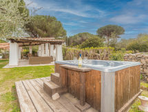 6-værelse-hus 190 m2 på 2 etager. Komfortabelt og hyggeligt indrettet: stor stue/spisestue med sat-TV, fladskærms TV og klimaanlæg. Udgang til have. 1 dobbeltværelse med brus/bidet/WC. 1 dobbeltværelse med brus/WC. Kogeniche (4 kogeplader, ovn, opvaskemaskine, mikroovn, fryser). Særskilt toilet. Overetage: 1 stort dobbeltværelse med bad/brus/bidet/toilet og klimaanlæg. Udgang til veranda. 1 dobbeltværelse med klimaanlæg. 1 dobbeltværelse, uden skab. Brus/bidet/WC. Klimaanlæg (ekstra). Terrasse overdækket, stor havesiddeplads overdækket, have. Havemøbler, grill, siddeplads. Til benyttelse: vaskemaskine, strygejern hårtørrer. Den storslåede have lover uforglemmelige ferier. Med sin egen spabad. Udnyt boblebadet. Der er en barneseng. Det har et bordtennisbord. Der er også en mikrobølgeovn.- Aktiviteter i nærheden