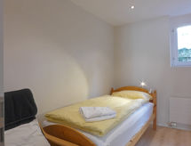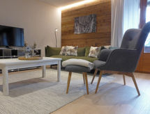"Apt. B", 4-værelse-lejlighed 85 m2 i 1. etage. Rummelig og lys, renoveret i år 2021, moderne og smagfuld indrettet: stue/spisestue med åben kamin, spisebord og kabel-TV. 1 værelse med 2 senge (90 cm, længde 190 cm). 1 værelse med 1 seng (90 cm, længde 190 cm), 1 x 2 køjesenge (90 cm, længde 200 cm). 1 værelse med 2 senge (90 cm, længde 190 cm). Store, åbent køkken (4 Induktionskomfur, Brødrister, kedel, elektrisk kaffemaskine, Kapsler til kaffemasin (Nespresso) ekstra, raclettegrill, kombi-ovn). Brus/WC, særskilt toilet. Stor altan, vest vendt. Herlige panoramaudsigt over bjergene og dalen. Til benyttelse: strygejern hårtørrer, brænde (ekstra). Internet (trådløs LAN [WLAN], gratis). Bemærk venligst: velegnet for familier. Ikke-ryger lejlighed. Brandslukker.- Faciliteter