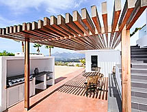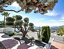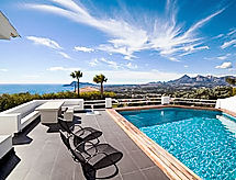 "Palm Spring", 4-værelse-villa 200 m2. Rummelig og lys, moderne og stilfuld indrettet: stue/spisestue 65 m2, på 2 etage med klimaanlæg og varmluft opvarming. Udgang til terrasse, til pool. 1 værelse med 1 fransk seng, brus/WC, sat-TV, klimaanlæg og varmluft opvarming. Udgang til terrasse, til pool. 1 værelse med 1 fransk seng, brus/WC, klimaanlæg og varmluft opvarming. 1 værelse med 1 fransk seng, brus/WC, klimaanlæg og varmluft opvarming. Køkken (ovn, opvaskemaskine, mikroovn, fryser). Udgang til have. Særskilt toilet. Stor have. Havemøbler, grill, liggestole, siddeplads. Herlige panoramaudsigt over havet og bjergene. Til benyttelse: vaskemaskine, strygejern. Internet (trådløs LAN [WLAN], gratis). Garage (2 Biler). Bemærk venligst: ikke-ryger hus. TV kun ES, FR. AT-423070-A Med udsigt over havet. Selvom det bliver så varmt om natten, er det dejligt, du kan tænde klimaanlægget og sove i et behageligt tempereret indeklima. Huset er også udstyret med en veranda. Huset er også udstyret med opvaskemaskine. En pool er tilgængelig. Der er en privat pool. Hvad ville et moderne køkken være uden en mikrobølgeovn? Den der selvfølgelig er tilgængelig. Der er en komfur.- Faciliteter