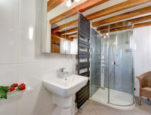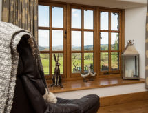 4-værelse-hus på 3 etager. Lys, pæn og smagfuld indrettet: stor indgang. 1 værelse med 1 seng. Overetage: 1 værelse med 1 dobbeltseng, bad/brus/WC og TV (fladskærms TV). 1 værelse med 1 dobbeltseng, brus/WC og TV (fladskærms TV). Brus/WC. 2. Overetage: stor stue/spisestue med tagvindue med TV (fladskærms TV), cd, stereoanlæg, DVD og træovn. Åbent køkken (4 kogeplader, ovn, opvaskemaskine, mikroovn, fryser) med bar. Gulvvarme. Havesiddeplads, have. Havemøbler. Flotte udsigt over landskabet. Til benyttelse: vaskemaskine, tørretumbler. Internet (trådløs LAN [WLAN], gratis). Parkeringsplads. Bemærk venligst: ikke egnet for børn under 10 år. Ikke-ryger hus. Maksimum 2 husdyr/hunde tilladt. En veranda er tilgængelig.- Karakteristika for boligen