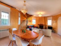 Urb Costa Zefir: Smuk, komfortabelt villa "Pasja". I byen, 1 km fra bymidten af Miami-Platja, solrige beliggenhed, 1.2 km fra havet, 1.2 km fra stranden. Til alene benyttelse: grund 620 m2 (indhegnet), pool kantet (10 x 4 m, 80 - 190 cm dyb, Sæsonbestemt tilgængelighed: 01.Jan. - 31.Dec.) med indetrappe. Pergola, havemøbler, Underholdning af poolen af ejeren/gartneren parkeringsplads ved huset. Supermarked 350 m, restaurant 1.3 km, bageri 350 m, togstation "Hospitalet" 3 km, badebugt 1.9 km. Golfbane (13 hul) 3 km. Nærliggende attraktioner: parque Portaventura 28 km, parque acuático Aquopolis 31 km, parque Natural del Delta del Ebro 53 km, Tarragona 37 km, Reus 30 km, Barcelona 132 km. Bemærk venligst: bil anbefales. Unge grupper kun på forespørgsel. Et ekstraordinært område, hvor du kan køre godt. Ridevenner er i gode hænder her. I forlystelsesparken får hele familien deres penge. Eventyr, action og sjov venter dig.Interior