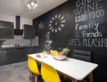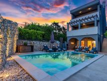 Moderne, hyggeligt, luksuriøse villa "Paula", omgivet af træer. Husudstyr: fitnessrum, aircondition, billiard, vaskemaskine (til privat afbenyttelse). Parkering: parkering nær huset, reserveret parkeringsplads. Tilgængeligt med bil året rundt. Beliggenhed: i bydelen Crikvenica, fredelig, solrige beliggenhed i det grønne. Udsigt fra huset til havet. Husets omgivelser: grund (til privat afbenyttelse, indhegnet), have (til privat afbenyttelse, indhegnet), pool (til privat afbenyttelse, længde 6 m x bredde 4 m), udendørs brus (til privat afbenyttelse), bordtennis (til privat afbenyttelse), grill (til privat afbenyttelse). Infrastruktur og afstande: indkøbsforretning 800 m, fødevarer butik 800 m, supermarked 800 m, restaurant 600 m, stenstrand 800 m, sandstrand 700 m, kiselsten strand 750 m, klippe strand 800 m, tennis 900 m. Vær opmærksom på at der i nærheden befinder sig: en motorvej i 25 km og en lufthavn/landingsbane i 30 km. Solen skinner og bjerget ringer. Til vandreture et egnet sted. Træn i gymnastiksalen og returner pasform og energisk fra din ferie.Interior