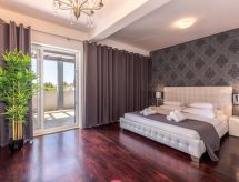 8-værelse "PAULA", hus (fritstående), til 12 personer, 250 m2 på 2 etager, moderne og luksuriøs indrettet. Stue/spisestue med sat-TV og spisebord. Rauchen nicht erlaubt. Internet (Trådlös LAN [WLAN]). Soveværelse med 1 dobbeltseng. Soveværelse med 1 dobbeltseng. Soveværelse med 1 dobbeltseng. Soveværelse med 1 dobbeltseng. Soveværelse med 1 dobbeltseng. Soveværelse med 1 dobbeltseng. Køkken med 4 varmeplader, mikroovn, oven, spisebord, opvæakemaskine og køleskab. Bad/brus/WC og separate toilet. Altan, 24 terasse 22 m2, havemøbler, 6 liggestol. Andet udstyr: pengeskab, vaskemaskine. Bare tag din hund med dig i stedet for at overdrage det til slægtninge eller til kæledyrsbedriften. Fordi din firbenede ven er velkommen her. Med indhegnet grund. For at holde det køligt om sommeren har dette feriehus aircondition. En terrasse er tilgængelig. Velegnet til grill. Der er en opvaskemaskine. Huset er også udstyret med et poolbord. Der er et bordtennisbord. Der er en komfur.- Karakteristika for boligen