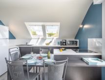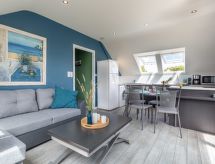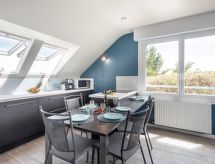 Lille residens "Pevar Avel", på 3 etager. I byen, 2.5 km fra bymidten af Carnac Plage, 200 m fra havet, 200 m fra stranden, beliggende ved en landevej. Offentlige parkeringspladser på vejen. Indkøbsforretning 2.5 km, fødevarebutik 150 m, sandstrand "Plage de St Colomban" 80 m, dykkercenter 4 km, varmtvandsbad "Thalassothérapie Thalazur" 1.8 km. Golfbane (18 hul) 15 km, sejladsskole 1.5 km. Nærliggende attraktioner: Les alignements de Carnac 4 km, La Trinité sur Mer 5 km, Presqu'ile de Quiberon 15 km, Vannes 35 km, Lorient 55 km, Belle île en Mer, Houat, Hoedic. Vandrestier Le Golfe du Morbihan. Sejlads er muligt med os. Carnac er et populært område for erfarne sejlere. Et populært surfemål med forfriskende bølger. Surferne er glade for at være her.Interior