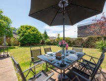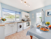 "Preston Down", 3-værelse-bungalow. Enkelt og komfortabelt indrettet: stue med TV og DVD. 1 dobbeltværelse med 1 dobbeltseng. 1 dobbeltværelse med 1 x 2 køjesenge, 1 dobbeltseng. Køkken (4 kogeplader, ovn, mikroovn) med spisebord. Bad/brus, særskilt toilet. Opvarming. Havesiddeplads, have. Til benyttelse: vaskemaskine, tørretumbler. Internet (trådløs LAN [WLAN], gratis). Bemærk venligst: ikke-ryger hus. 1 husdyr/hund tilladt. TV kun EN. En veranda er tilgængelig. Det har en tørretumbler. Det har en dvd-afspiller.- Karakteristika for boligen