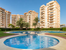 Flerfamiliehus "Puertomar". 100 m fra havet. Til medbenyttelse: have 1'000 m2 græsplæne, pool (90 - 215 cm dyb, Sæsonbestemt tilgængelighed: 01.Maj. - 30.Sep.). Børnepool, udendørs brus, legeplads. I huset: elevator. Parkeringsplads (begrænset antal) ved huset. Fødevarebutik 50 m, supermarked, restaurant 100 m, busstoppested 50 m, sandstrand 100 m. Golfbane 25 km. Sejlsport er en imponerende måde at opleve naturen på. Med hjælp fra vindens kraft er en særlig klimavenlig måde at gøre en tur og muligt med os.Interior