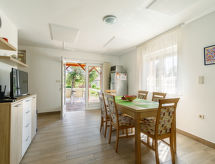 Balatonmáriafürdő: Hyggeligt 2-familiehus "Pear Trees", renoveret i 2020. I byen, solrige beliggenhed, 200 m fra søen. Til alene benyttelse: grund 800 m2 (indhegnet), have med græsplane og træer, liggeplæne. I huset: trådløs LAN [WLAN], aircondition, vaskemaskine. Indkøbsforretning 300 m, fødevarebutik 500 m, restaurant, græsstrand 200 m. Cykelvej 100 m. Bemærk venligst: toglinie i nærheden. Surfing eller ikke surfing er ikke et spørgsmål her. Du skal bare prøve det. På stedet, mulighed for at gøre det.Interior