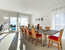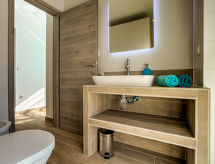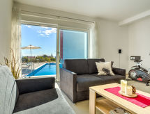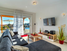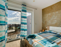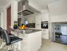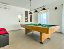 9-værelse-hus 330 m2 på 3 etager, syd vendt. Pæn og moderne indrettet: stue/spisestue 100 m2, på 2 etage med 1 sovesofa (170 cm, længde 190 cm), køkkenblok og sat-TV (fladskærms TV), klimaanlæg. Udgang til terrasse, til pool. Stue/spisestue 40 m2 med 1 sovesofa (170 cm, længde 190 cm), sat-TV (fladskærms TV), klimaanlæg. Udgang til terrasse, til pool. Åbent køkken (ovn, opvaskemaskine, 4 keramiske kogeplader, fryser, elektrisk kaffemaskine). 2 særskilte toiletter. Overetage: 1 værelse med 1 fransk seng (160 cm, længde 200 cm), brus/bidet/WC og klimaanlæg. 1 værelse med 1 dobbeltseng (2 x 90 cm, længde 200 cm), brus/bidet/WC og klimaanlæg. Udgang til altan. 1 værelse med 1 x 2 køjesenge (90 cm, længde 190 cm), klimaanlæg. 1 værelse med 1 fransk seng (160 cm, længde 200 cm), brus/WC og klimaanlæg. 1 værelse med 1 fransk seng (160 cm, længde 200 cm), klimaanlæg. Brus/WC. 2. Overetage: 1 værelse med 1 fransk seng (160 cm, længde 200 cm), brus/bidet/WC og klimaanlæg. 1 værelse med 1 fransk seng (160 cm, længde 200 cm), brus/bidet/WC og klimaanlæg. Udgang til altan. Gulvvarme (ekstra). 2 altan 5 m2, 2 terrasser 25 m2, terrasse 35 m2. Havemøbler, liggestole. Vid udsigt over havet. Til benyttelse: pengeskab, barneseng, hårtørrer. Internet (trådløs LAN [WLAN], gratis). Bemærk venligst: ikke-ryger hus. Første hus har spise/dagligstue og åbent køkken i stueetagen, 2 soveværelser på første etage og 2 soveværelser på anden etage. Det andet hus har spise/dagligstue i stueetagen samt 3 soveværelser på første etage. For jeres velvære kan du nyde boblebadet i feriesæsonen. Der er balkon. Der er en pool. Huset er også udstyret med en privat pool. Det har et trådløst lokalnetværk (WLAN). Huset er også udstyret med et poolbord.- Faciliteter