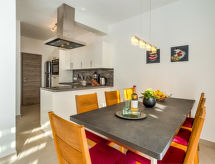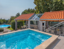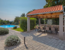 Pobri: Enfamiliehus "Races", på 3 etager, bygget i 2017. Ovenfor Opatija, 2.5 km fra bymidten af Opatija, rolig, solrige beliggenhed, 2.5 km fra havet, 2.5 km fra stranden, i en blind vej. Til alene benyttelse: grund 1'000 m2 (indhegnet), græsplane 200 m2, pool kantet (7 x 4 m, 30 m2, 140 cm dyb, Sæsonbestemt tilgængelighed: 01.Maj. - 15.Okt.). Udendørs brus, boblebad, terrasse (12 m2), havemøbler, grill. I huset: adgang til internet, billiard, bordfodbold, vaskemaskine. Parkeringsplads (for 5 biler) ved huset på grunden. Indkøbsforretning 150 m, restaurant 2.5 km, kiselstenstrand 2.5 km, strandliggende pool 2.5 km, strand belagt med beton 2.5 km. Grupper af teenagere er ikke tilladt. Det er ikke tilladt at arrangere en fest. Videoovervågning af ejendommen. Ekstra opvarmning af boblebad i perioden 15.10.-01.05. I andre perioder er det inkluderet i prisen. Enheden består af 2 huse, som kun lejes som én enhed. Til alene benyttelse: terrasse 12 m2, udendørs køkken (4 kogeplader, køleskab), pool (35 m2, 140 cm dyb, 01.05.-15.10.). Formet pool.Interior