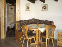 Niederthai 7 km fra Umhausen: Stor, smuk 3-familiehus "Rieser", 1'550 meter over havets overflade. I bymidten fra Niederthai, 7 km fra centrum af Umhausen, 16 km fra bymidten af Ötz, solrige beliggenhed, 10 m fra skiområdet. Til medbenyttelse: uberørt grund med græsmark. Terrasse, legeplads (gynge). I huset: skirum. Rundstykkeservice. Parkeringsplads på grunden. Indkøbsforretning 100 m, supermarked 7.5 km, restaurant 400 m, bageri 1.4 km, café 400 m, badesø 7 km. Ridehal 50 m, vandrestier fra huset 10 m, bjergbane 16 km, skilift 100 m, skipiste 10 m, skiudlejning 50 m, skibusstoppested 30 m, skiskole 100 m, langrendsløjpe 10 m. Bemærk venligst: velegnet for familier. Ejer bor i sammen hus. Ridning til rådighed. Her er fremragende pleje af hest og rytter, og en unforgotten rytter ferie er intet i vejen.Interior