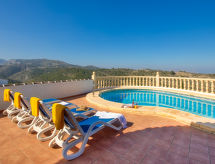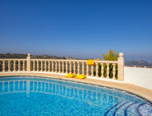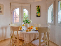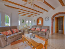Monte Pedreguer 4 km fra Golf La Sella: Smuk, hyggeligt villa "Robinson", på 2 etager. I bydelen Monte Pedreguer, 3.5 km fra bymidten af Pedreguer, 8 km fra centrum af Jávea, 15 km fra bymidten af Dénia, rolig, solrige beliggenhed, 11 km fra havet, 14 km fra stranden. Til alene benyttelse: have i forskellige niveauer, 800 m2 planter og træer, pool kantet (4 x 8 m, 210 - 110 cm dyb, Sæsonbestemt tilgængelighed: 01.Jan. - 31.Dec.) med indetrappe. Grill, parkeringsplads. Supermarked 1.5 km, restaurant 1.5 km, bar 1.5 km, sandstrand 13 km. Ejeren accepterer ikke nogen ungdomsgrupper. Vandrende fans begynder i hver årstid for at udforske naturen i det flade område. Surfer venner pas på, den lokale kyst har ideelle betingelser for surfing.Interior
