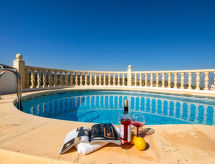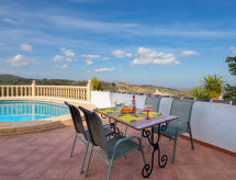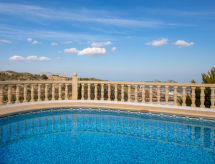 "Villa Robinson", 4-værelse-villa 150 m2 på 2 etager. Rummelig og lys, pæn og hyggeligt indrettet: stue/spisestue med sat-TV og digital TV. Udgang til terrasse, til pool. 1 værelse med 1 fransk seng (160 cm, længde 190 cm), brus/WC og ventilator. 1 værelse med 2 senge (90 cm, længde 180 cm), ventilator. Åbent køkken (ovn, 4 keramiske kogeplader, Brødrister, kedel, mikroovn, fryser, elektrisk kaffemaskine). Brus/WC. Intet opvarmningsalternativ. Overetage: 1 værelse med 1 fransk seng (160 cm, længde 190 cm), bad/WC og ventilator. Udgang til terrasse med brus/WC. Stor terrasse. Havemøbler. Herlige udsigt over havet og bjergene. Til benyttelse: vaskemaskine, tørretumbler, strygejern højstol, barneseng, hårtørrer. Internet (trådløs LAN [WLAN], gratis). Parkeringsplads. Bemærk venligst: TV kun EN, ES. VT-483400-A Tilbyder spektakulær udsigt over havet. Der er en privat pool. Find ud af det eksisterende tv-apparat. Uanset om lokale nyheder eller internationale nyheder, med fjernsynet, er du altid velinformeret. En tørretumbler er tilgængelig. For at forberede noget hurtigt selv er en mikrobølgeovn klar.- Aktiviteter i nærheden