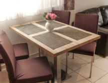 2-værelse-lejlighed 47 m2 i 4. etage. Pæn og hyggeligt indrettet: stue/spisestue med 1 dobbelt klapseng (2 x 90 cm, længde 200 cm), TV og radio. Udgang til altan. 1 dobbeltværelse med 2 senge (90 cm, længde 200 cm). Åbent køkken (ovn, opvaskemaskine, 4 keramiske kogeplader, Brødrister, kedel, fryser, elektrisk kaffemaskine, fonduesæt (ost )). Bad/WC. Gulvvarme. Altan 8 m2, syd vendt og vest vendt. Altanmøbler. Flotte udsigt over Matterhorn. Til benyttelse: hårtørrer. Internet (trådløs LAN [WLAN], gratis). Bemærk venligst: ikke-ryger lejlighed. Maksimum 1 husdyr/hund tilladt. Der er et badekar.- Faciliteter