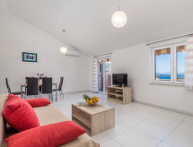 3-værelse-lejlighed 47 m2 i 1. etage, nord vendt. Stue/spisestue 32 m2 med 1 dobbelt sovesofa, sat-TV og klimaanlæg. Udgang til altan. 1 værelse med 1 dobbeltseng (2 x 80 cm, længde 200 cm). 1 værelse med 2 x 1 køjesenge. Åbent køkken (opvaskemaskine, 4 keramiske kogeplader, mikroovn, elektrisk kaffemaskine). Brus/WC. Altan 16 m2. Altanmøbler. Indskrænkede udsigt over havet. En balkon er tilgængelig. Huset er også udstyret med en pool. Huset er også udstyret med en børnebassin.- Faciliteter