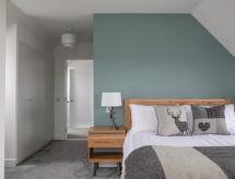 Moderne, luksuriøse villa "Ruadh", på 2 etager, fritstående. Ved bykanten, 24 km fra centrum af Portree, rolig beliggenhed, i det grønne. Til alene benyttelse: have i forskellige niveauer (ikke hegnet ind). Terrasse, terrasse, havemøbler. I huset: cykelrum. Parkeringsplads (for 8 biler). Indkøbsforretning 8 km, fødevarebutik 8 km, færge "Uig" 54 km. Golfbane 36 km. Nærliggende attraktioner: Dunvegan Castle 14 km, Cuilin Hills 15 km, Old Man of Storr 35 km, Fairy Pools 31 km. Bemærk venligst: bil anbefales. Bare surf igen på en positiv bølge? Stedet inviterer til bølge tur. Der findes en golfbane inden for rækkevidde. Det forventer en speciel golfudfordring. Alt i alt er varierede ridestier tilgængelige i regionen. Ideel til vellykket ridning ferie.Interior