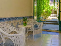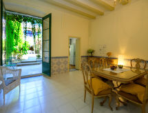 Rækkehus "Sant Felip", på 4 etager. I byen, centrale beliggenhed, 100 m fra havet, 100 m fra stranden. Til alene benyttelse: have. Pergola, havemøbler, single garage. Fødevarebutik, restaurant 50 m, togstation, sandstrand 100 m. Golfbane 1 km, ridehal 1 km. Ejeren accepterer ikke nogen ungdomsgrupper.Interior
