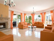 "Santana", 8-værelse-villa 319 m2. Lys: stue/spisestue med spisebord, sat-TV, internationale TV-kanaler og klimaanlæg. Udgang til havesideplads. 1 værelse med klimaanlæg. Køkken (ovn, opvaskemaskine, 4 keramiske kogeplader, Brødrister, kedel, mikroovn, fryser, elektrisk kaffemaskine). Brus/WC. Intet opvarmningsalternativ. Nederste etage: stue med klimaanlæg. 1 værelse med klimaanlæg. Bad/WC, 4 brus/WC. Overetage: 3 værelse, alle værelser med klimaanlæg. Bad/WC, 2 brus/WC. Havesiddeplads. Havemøbler. Udsigt over svimmingpoolen. Til benyttelse: vaskemaskine, strygejern. Internet (trådløs LAN [WLAN], gratis). Garage på grunden. 1 husdyr/hund tilladt. AT-450955-A En ferie godbid for mennesker og dyr. Dette er en hund og kat venlig ferie indkvartering. Klimaanlægget sikrer en god stuetemperatur. Fordi den følsomme faktor spiller en vigtig rolle og er vigtig for os. Huset er også udstyret med en pool. Der er en privat pool.- Karakteristika for boligen