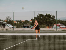 Resort "Camp Tiha". 800 m fra bymidten af Šilo, solrige beliggenhed, direkte ved havet, direkte ved stranden. Til medbenyttelse: grund 4 ha (indhegnet) med græsplæne og træer. Udendørs brus, tennis (ekstra), strandvolleyboll, legeplads. I anlægget: reception, bar, adgang til internet, trådløs LAN [WLAN], vaskeri, vaskemaskine (ekstra), cykeludlejning. Til afbenyttelse: kano (ekstra). Parkeringsplads på grunden. Indkøbsforretning, restaurant 500 m, kiselstenstrand "Tiha". Bemærk venligst. Venner af vandreture snørrer vandrestøvlerne og går på en udforskningstur gennem naturen i det flade område. Spilbare tennisbaner er tilgængelige for sportslige ferie uger.Interior