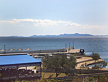 2-værelse-lejlighed 40 m2 i 1. etage. Stue/spisestue 16 m2 med 1 dobbelt sovesofa (160 cm, længde 200 cm), sat-TV (fladskærms TV), klimaanlæg. Udgang til altan. 1 værelse med 1 dobbeltseng (2 x 80 cm, længde 200 cm). Udgang til altan. Åbent køkken (2 kogeplader, kedel, mikroovn). Brus/WC. Altan 3 m2, altan 5 m2. Altanmøbler. Udsigt over havet. Til benyttelse: internet (trådløs LAN [WLAN], gratis). Til jeres velvære kan du nyde boblebadet i feriesæsonen. På legepladsen kan børnene slippe af damp.- Faciliteter