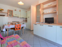 Komfortabelt residens "Solmare". I byen, 300 m fra bymidten, 700 m fra havet, 650 m fra stranden. Til medbenyttelse: pool (25 x 13 m, 50 - 140 cm dyb, Sæsonbestemt tilgængelighed: 05.Jun. - 11.Sep. poolen åbningstider: 10:00-13:00 og 15:00-19:00). Børnepool. I huset: solterrasse. Parkeringsplads ved huset. Supermarked 250 m, restaurant, bar 100 m. Bemærk venligst: forpligtelse til at bære bade-hatte.Interior