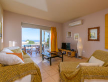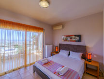 "St. Nicolas View", 3-værelse-villa 117 m2 på 2 etager. Rummelig og lys, meget komfortabelt indrettet: stor stue/spisestue med sat-TV (fladskærms TV), klimaanlæg. Udgang til terrasse, til pool. Åbent køkken (ovn, opvaskemaskine, 4 keramiske kogeplader, Brødrister, kedel, mikroovn, elektrisk kaffemaskine) med spisebord. Særskilt toilet. Overetage: (trappe uden gelænder) 1 dobbeltværelse med 1 dobbeltseng og sat-TV (fladskærms TV), klimaanlæg. Udgang til altan. 1 dobbeltværelse med 2 senge og klimaanlæg. Udgang til altan. Brus/WC. Stor altan, stor terrasse. Havemøbler, altanmøbler, grill, siddeplads. Panoramaudsigt over havet og by. Til benyttelse: vaskemaskine, strygejern hårtørrer. Internet (trådløs LAN [WLAN], gratis). Bemærk venligst: ikke-ryger hus. Brandalarm, brandslukker. 1040K91003009601 Vores have venter på dig for en dukkert i afslapningen. Desuden er de forkælet med en klar udsigt over havet. Selvom det bliver så varmt om natten, er det dejligt, du kan tænde klimaanlægget og sove i et behageligt tempereret indeklima. Velegnet til grill. Der er en privat pool. Ved rengøring.- Faciliteter