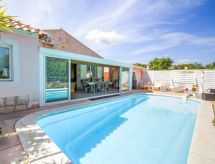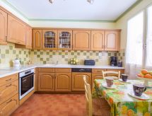 4-værelse-hus 90 m2. Komfortabelt og pæn indrettet: indgang med klimaanlæg. Stue/spisestue med TV (fladskærms TV), stereoanlæg. Udgang til terrasse. 2 værelse, alle værelser med 1 fransk seng (140 cm, længde 190 cm). 1 værelse med 1 dobbelt sovesofa (160 cm, længde 200 cm), TV (fladskærms TV). Køkken (opvaskemaskine, 3 keramiske kogeplader, Brødrister, kedel, mikroovn, fryser, elektrisk kaffemaskine, pizzaovn). Bad, særskilt toilet. El-opvarming. Terrasse 33 m2, overdækket. Havemøbler, grill. Udsigt over svimmingpoolen. Til benyttelse: vaskemaskine, barneseng. Internet (trådløs LAN [WLAN], gratis). Parkeringsplads ved huset. Bemærk venligst: velegnet for familier. 1 lille husdyr/hund tilladt. TV kun FR. Brandalarm. Det har en privat pool. Find ud af det eksisterende tv-apparat. Uanset om lokale nyheder eller internationale nyheder, med fjernsynet, er du altid velinformeret. Der er internetforbindelse. Hvad ville et moderne køkken være uden en mikrobølgeovn? Den der selvfølgelig er tilgængelig.- Faciliteter