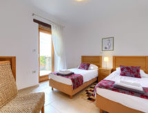 5-værelse-villa 200 m2 på 2 etager. Stue/spisestue 70 m2 med sat-TV (fladskærms TV), DVD og klimaanlæg. Udgang til terrasse. 1 værelse med 1 fransk seng (160 cm, længde 200 cm), brus/bidet/WC og klimaanlæg. Åbent køkken (ovn, opvaskemaskine, 4 keramiske kogeplader, mikroovn, fryser). Særskilt toilet. Overetage: 1 værelse med 1 fransk seng (160 cm, længde 200 cm), brus/bidet/WC og klimaanlæg. 1 værelse med 2 senge (80 cm, længde 200 cm), klimaanlæg. Udgang til terrasse. 1 værelse med 2 senge (80 cm, længde 200 cm), brus/bidet/WC og klimaanlæg. Brus/bidet/WC. Terrasse 20 m2 delvis overdækket, terrasse 10 m2. Havemøbler, liggestole. Udsigt over svimmingpoolen og landskabet. Til benyttelse: pengeskab. Internet (trådløs LAN [WLAN], gratis). Selvom det bliver så varmt om natten, er det dejligt, du kan tænde klimaanlægget og sove i et behageligt tempereret indeklima. Der er en opvaskemaskine til rådighed. Der er en privat pool. Takket være vaskemaskinen finder du mindre tøj at bære. Der er en dvd-afspiller.- Faciliteter