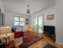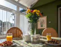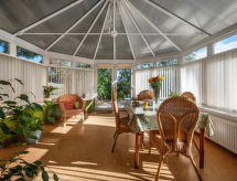 3-værelse-feriehytte. Emner egnet for 2 voksne. Rummelig og lys, komfortabelt og stilfuld indrettet: stue med TV og fladskærms TV. Stor stue/spisestue med TV og fladskærms TV. 1 dobbeltværelse med 1 dobbeltseng. Køkken (ovn, 4 Induktionskomfur, Brødrister, mikroovn, fryser, grill). Bad/brus/WC. Opvarming. Udestue. Til benyttelse: vaskemaskine, tørretumbler, højstol, barneseng til 2 år, hårtørrer. Internet (trådløs LAN [WLAN], gratis). Parkeringsplads. Bemærk venligst: TV kun EN. Brandalarm. Huset er også udstyret med en veranda. Det har en internetforbindelse. Det har et trådløst lokalnetværk (WLAN).- Aktiviteter i nærheden