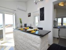 3-familiehus "Sun seeker", bygget i 2017. Rolig, solrige, høj beliggenhed, 250 m fra havet, 300 m fra stranden. Til medbenyttelse: grund 470 m2 (indhegnet). Grill. I huset: adgang til internet. Parkeringsplads ved huset på grunden. Indkøbsforretning 600 m, indkøbscenter 4 km, restaurant, kiselstenstrand, strand belagt med beton 300 m. Marina 6 km, ridehal 3 km. Nærliggende attraktioner: NP Krka 17 km. Oplev sejlruter i regionen, der tager dig til de mest fantastiske naturtyper og landskaber.Interior