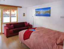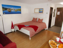 1-værelse-lejlighed 25 m2 i 1. etage. Delvis renoveret i år 2021, smagfuld og hyggeligt indrettet: stue/soveværelse med 1 dobbeltseng (160 cm, længde 200 cm), spisebord, TV og radio. Udgang til altan. Åbent køkken i indgang (3 kogeplader, ovn, Brødrister, kedel, fryser, elektrisk kaffemaskine, fonduesæt (ost )). Brus/WC. Altan 7 m2, øst vendt. Altanmøbler. Indskrænkede udsigt over bjergene. Til benyttelse: hårtørrer. Internet (trådløs LAN [WLAN], gratis). Bemærk venligst: ikke-ryger lejlighed.- Faciliteter