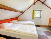 "Select", 3-værelse-hus 59 m2 på 2 etager. Hensigtsmæssig indrettet: indgang med separate toilet. Stue/spisestue med åben kamin, spisebord og fladskærms TV. Udgang til terrasse. Åbent køkken (4 kogeplader, mikroovn, elektrisk kaffemaskine). Siddebadekar, dobbelt håndvask. Overetage: 2 skrå dobbeltværelse, alle værelser med 2 senge. Terrasse. Havemøbler. Til benyttelse: højstol, barneseng. Bemærk venligst: brandalarm. Nyd din morgenmad i den vedlagte restaurant. Der er en indendørs pool. Der er en børnepool. Find ud af det eksisterende tv-apparat. Uanset om lokale nyheder eller internationale nyheder, med fjernsynet, er du altid velinformeret. Der er et bordtennisbord.- Aktiviteter i nærheden