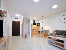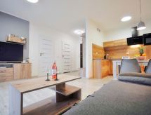 Moderne, komfortabelt flerfamiliehus "Szum Morza", bygget i 2017. Ved bykanten, rolig, solrige beliggenhed, 350 m fra havet, i det grønne. Til medbenyttelse: svømmehalle med varme (6 x 17 m, poolen åbningstider: 09:00-21:00). Brus/toilet i poolområdet, børnepool, boblebad, legeplads. I huset: sauna, fitnessrum, legeværelse, elevator, centralvarme, alarmanlæg. Parkeringsplads ved huset på grunden, offentlige parkeringspladser på vejen. Indkøbsforretning 1.3 km, fødevarebutik, supermarked 850 m, restaurant 300 m, busstoppested 1.1 km, togstation 2.5 km, sandstrand 350 m. Lystbådhavn 3 km. Nærliggende attraktioner: Oceanarium 3 km, Molo 3 km, Park Dziki Zachód Zieleniewo 7 km. Overvåget residence. Oplev sejlruter i regionen, der tager dig til de mest fantastiske naturtyper og landskaber. Alt i alt er varierede ridestier tilgængelige i regionen. Ideel til vellykket ridning ferie. Her har du ret, hvis du ikke kun vil slappe af i løbet af din ferie, men også gerne gøre noget for dit fitness.Interior