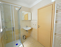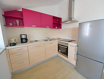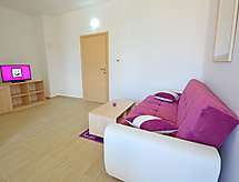 "Tea", 3-værelse-lejlighed 67 m2 i 2. etage. Stue/spisestue 25 m2 med 1 sovesofa og sat-TV (fladskærms TV), klimaanlæg. Udgang til altan. 2 værelse, alle værelser med 1 dobbeltseng (2 x 80 cm, længde 200 cm), brus/bidet/WC og klimaanlæg. Udgang til altan. Åbent køkken (ovn, opvaskemaskine, 4 keramiske kogeplader, fryser, elektrisk kaffemaskine). Altan 7 m2, altan 5 m2. Altanmøbler. Indskrænkede udsigt over havet. Til benyttelse: pengeskab, barneseng. Internet (trådløs LAN [WLAN], gratis). Der er et brusebad, så tag dig tid til lidt afslapning og forfriskning. Klimaanlægget sikrer en god stuetemperatur. Fordi den følsomme faktor spiller en vigtig rolle og er vigtig for os. Der er et poolbord.- Faciliteter