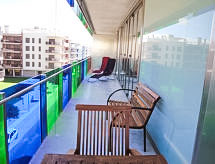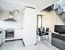 3-værelse-lejlighed 65 m2 i 3. etage. Moderne og smagfuld indrettet: stue/spisestue med spisebord og TV. Udgang til terrasse. 1 værelse med 2 x 1 køjesenge (90 cm, længde 190 cm). 1 værelse med 1 fransk seng (135 cm, længde 190 cm). Åbent køkken (ovn, opvaskemaskine, 4 keramiske kogeplader, fryser). Brus/bidet/WC. Klimaanlæg, varmluftsopvarming. Altan 28 m2, stor terrasse 55 m2. Havemøbler, liggestole. Ved siden vid udsigt over havet. Til benyttelse: vaskemaskine. Parkeringsplads nr. 7. HUTT000301 Et bad er til stedet. Kun shampooed hurtigt og bruser og allerede kan starte en ny dag med ferie. Objekt med elevator. I vores have har du god plads til afslapning og rekreation.- Faciliteter