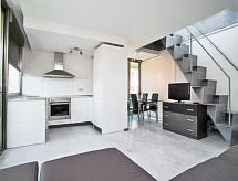 Meget moderne, luksuriøse flerfamiliehus "Thalassa", bygget i 2007. I byen, 2 km fra bymidten af Cambrils, rolig, solrige beliggenhed, 100 m fra havet, 100 m fra stranden, beliggende ved en landevej. Til medbenyttelse: velplejet have (indhegnet) græsplæne, pool (110 - 180 cm dyb, Sæsonbestemt tilgængelighed: 01.Jan. - 31.Dec.). Udendørs brus. I huset: elevator. Parkeringsplads. Indkøbsforretning, supermarked, restaurant, bageri 200 m, busstoppested, sandstrand 100 m. Golfbane 2 km. Nærliggende attraktioner: parque temático Portaventura 4 km, parque acuático Aquopolis 6 km, Spa Aquum 6 km, karting 4 km. Emner egnet for 2 voksne + 2 børn unge grupper kun på forespørgsel. Fredfyldt og roligt område. Stilhed og gode manerer er forventet. Ankom du vil finde alt det surfing hjerte ønsker. En placering, der er fantastisk til surfing. Tilbring en god tid på forlystelsesparken med hele rejsegruppen eller bare et par.Interior