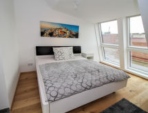 "Relax (AC incl.)", 2-værelse-penthouse 73 m2 på 2 etager i 4. etage. Rummelig og lys, fuldstændig renoveret i år 2021, moderne og smagfuld indrettet: indgang. Skrå, åben stue/soveværelse med 1 udtræksseng (2 pers.), kabel-TV, internationale TV-kanaler og klimaanlæg. Åbent køkken (ovn, opvaskemaskine, 4 keramiske kogeplader, Brødrister, kedel, elektrisk kaffemaskine) med spisebord. Udgang til terrasse. Brus/WC. Klimaanlæg, gulvvarme. Tagetage: skrå stue/soveværelse med 1 dobbeltseng (180 cm, længde 200 cm), klimaanlæg med vaskekumme og med hjørnebadekar. Terrasse 15 m2, syd vendt. Havemøbler (4), siddeplads. Udsigt over by. Til benyttelse: strygejern hårtørrer. Internet (trådløs LAN [WLAN], gratis). Bemærk venligst: ikke-ryger lejlighed. Praktisk med elevatoren til hoveddøren. For at holde det køligt om sommeren har dette feriehus aircondition. En veranda er tilgængelig.- Faciliteter