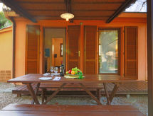 "Tipo B", 2-værelse-feriehytte 30 m2, i stueetagen. Komfortabelt indrettet: stue/spisestue med 2 sovemuligheder, køkkenblok og TV. Udgang til terrasse. 1 dobbeltværelse. Brus/bidet/WC. Klimaanlæg. Havesiddeplads. Siddeplads. Bemærk venligst: privat indgang. En reception er til din rådighed for denne ferieudlejning. For at tilfredsstille behovene hos vores gæster er der også en restaurant. Vi er glade for at kunne tilbyde dig halvpension i ferien. Med indhegnet grund. Vores have venter på dig for en dukkert i afslapningen. For jeres velvære kan du nyde boblebadet i feriesæsonen. For at holde det køligt om sommeren har dette feriehus aircondition. Det har en veranda. Huset er også udstyret med en børnebassin. Det har et bordtennisbord.- Faciliteter