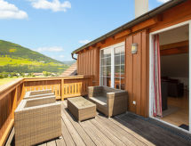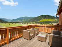 "Top 13", 4-værelse-penthouse 81 m2. Delvis skråt, komfortabelt og hyggeligt indrettet: indgang. Stor stue/spisestue med 1 dobbelt sovesofa (160 cm), pejs, spisebord, spisehjørne og sat-TV. Udgang til terrasse. 1 dobbeltværelse med skydedør. Udgang til altan. 1 dobbeltværelse. 1 børneværelse med skydedør med 1 x 2 køjesenge. Åbent køkken (ovn, opvaskemaskine, 4 keramiske kogeplader, fryser, elektrisk kaffemaskine). Bad/brus, særskilt toilet, dobbelt håndvask. Parketgulve. Terrasse 13 m2. Havemøbler. Panoramaudsigt over skipisterne og landskabet. Til benyttelse: internet (trådløs LAN [WLAN], gratis). Garage nr. 13. Bemærk venligst: ikke-ryger lejlighed. Brandslukker. 50508-025013-2020 Der er en terrasse. Der er en parkeringsplads. Det har en overdækket parkeringsplads.- Karakteristika for boligen