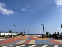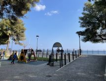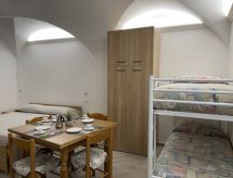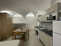 "Tra Sole e Mare", 2-værelse-lejlighed 60 m2 i 1. etage. Lys, fuldstændig renoveret, moderne og smagfuld indrettet: stue/spisestue med 1 x 2 køjesenge (90 cm), 1 dobbeltseng (1 x 160 cm), sat-TV. Stue/soveværelse med 1 x 2 køjesenge (90 cm), 1 dobbeltseng (1 x 160 cm), køkkenblok. Kogeniche (4 Induktionskomfur, mikroovn, elektrisk kaffemaskine). 2 brus/bidet/WC. Klimaanlæg, varmluftsopvarming. Til benyttelse: vaskemaskine, tørretumbler. Internet (trådløs LAN [WLAN]). 009057-LT-0390 Hvis vejret ikke spiller, er der også et tv.- Faciliteter