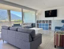 Gordola 7 km fra Locarno: Moderne, komfortabelt, lille lejlighedshus "Tre Torri", på 6 etager. I byen Gordola, rolig, solrige beliggenhed i en bydel. Til medbenyttelse: græsmark. I huset: elevator, cykelrum, centralvarme. Tilkørsel til til huset. Parkeringsplads nr. 20, fælles garage. Fødevarebutik 900 m, supermarked 1 km, restaurant 300 m, busstoppested "Linie 311" 100 m, togstation "SBB-CFF Riazzino" 900 m. Nærliggende attraktioner: Falconeria, Locarno, Madonna del Sasso, Orselina, Unesco Castelli di Bellinzona, Mercato Bellinzona SA, Mercato Cannobio IT, Mercato Luino, Ponte Tresa IT. Kendte søer nås nemt: Lago Maggiore, Lago di Lugano, Lago di Como. Vandrestier Valle Verzasca, Cardada, Monte Lego, Monte Tamaro, Centovalli, Vallemaggia. Bemærk venligst: velegnet for familier, passenede till ældre babyudstyr (ekstra). Ejeren accepterer ingen grupper. Ejeren accepterer ikke nogen ungdomsgrupper. Venner af vandreture snørrer vandrestøvlerne og går på en udforskningstur gennem naturen i det flade område.Interior