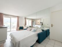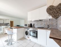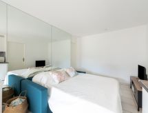 2-værelse-lejlighed 41 m2 i 4. etage. Komfortabelt indrettet: stue med 1 sovesofa (140 cm, længde 190 cm), TV, fladskærms TV, elektrisk opvarming og klimaanlæg. Udgang til terrasse. 1 værelse med 1 seng (140 cm, længde 190 cm). Kabine med 1 seng (90 cm, længde 190 cm). Åbent køkken (ovn, 2 Induktionskomfur, Brødrister, kedel, mikroovn, fryser, elektrisk kaffemaskine, Kapsler til kaffemasin (SENSEO) ekstra). Brus/WC. Terrasse 12 m2, vest vendt. Havemøbler. Til benyttelse: vaskemaskine, strygejern hårtørrer. Internet (trådløs LAN [WLAN], gratis). Parkeringsplads nr. 700 (overdækket). Bemærk venligst: brandalarm. Offer by a private individual according to Art. 155, IV of CGI. Residence. For at holde det køligt om sommeren har dette feriehus aircondition. En overdækket parkeringsplads er tilgængelig. Der er en mikrobølgeovn til rådighed.- Karakteristika for boligen