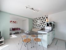 3-værelse-lejlighed 42 m2 i 4. etage. Komfortabelt og pæn indrettet: stue med TV (fladskærms TV), klimaanlæg. Udgang til terrasse. 1 værelse med 1 fransk seng (140 cm, længde 190 cm). 1 børneværelse med skydedør med 2 senge (70 cm, længde 190 cm). Kogeniche (ovn, 2 keramiske kogeplader, Brødrister, kedel, fryser, elektrisk kaffemaskine, Kapsler til kaffemasin (Senseo) ekstra). Brus, særskilt toilet. El-opvarming. Altan 7 m2, syd vendt. Altanmøbler, liggestole (2). Udsigt over have. Til benyttelse: vaskemaskine. Internet (trådløs LAN [WLAN], ekstra). Garage nr. 612, højde 194 cm, bredde 265 cm. Bemærk venligst: ikke-ryger lejlighed. Brandalarm. lille bruser : størrelse brusebakke 70 x 70 centimeter. Lejligheden er ikke tilgængelig for bevægelseshæmmede. Residence. Du kan tage elevatoren til gulvet i lejligheden. Den undertrykkende varme kan lægge en tung belastning på krop og sind. Derfor er lokalerne udstyret med aircondition. Der er internetforbindelse.- Karakteristika for boligen