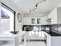 4-værelse-hus 100 m2. Pæn indrettet: stue/spisestue med TV (fladskærms TV). 1 værelse med 1 fransk seng (1 x 140 cm, længde 190 cm), brus. Åbent køkken (ovn, opvaskemaskine, 4 keramiske kogeplader, mikroovn, fryser). Særskilt toilet. Overetage: 1 værelse med 1 fransk seng (1 x 160 cm, længde 200 cm). Udgang til altan. 1 værelse med 2 senge (90 cm, længde 190 cm). Bad/WC. Terrasse 10 m2, have 300 m2. Havemøbler, grill. Til benyttelse: vaskemaskine, strygejern højstol, barneseng, puslebord. Internet (trådløs LAN [WLAN], gratis). Parkeringsplads (2 Biler).- Aktiviteter i nærheden